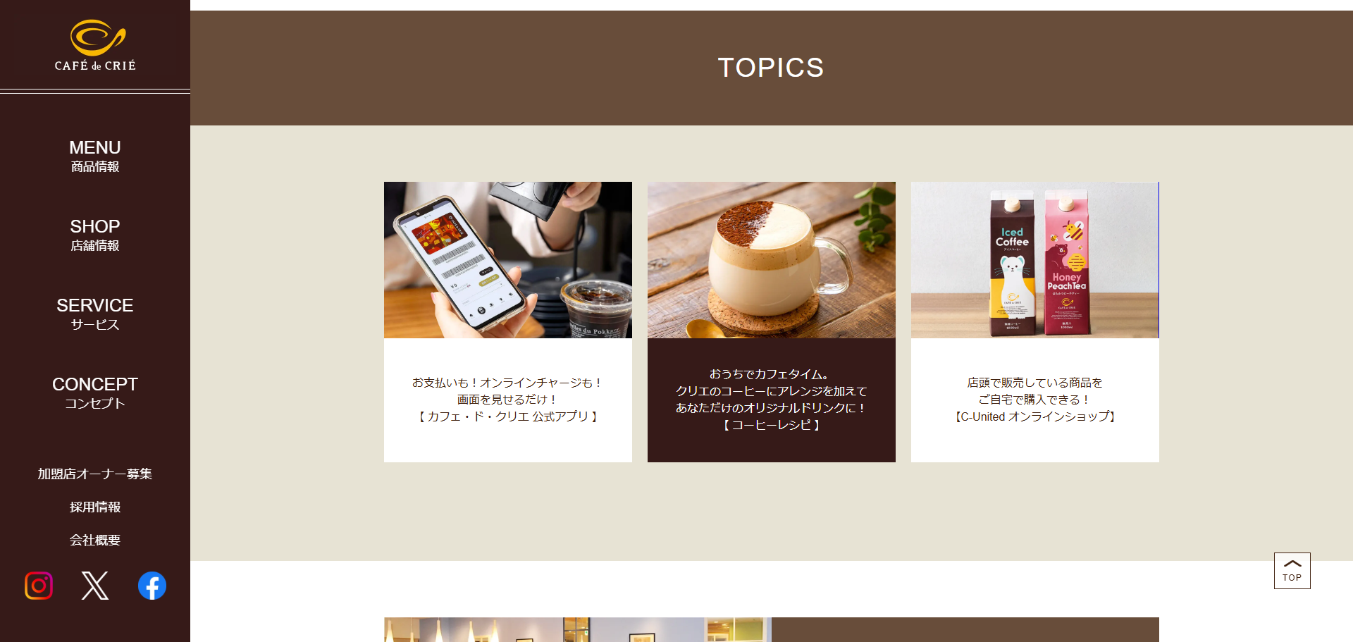 「一杯のコーヒー」からはじまる「たくさんのしあわせ」をコンセプトに、全国展開しているカフェ・ド・クリエ。本部は季節性・トレンド性・独自性のある商品を開発し、お客様が幸せになれるようサービスをブラッシュアップしています。