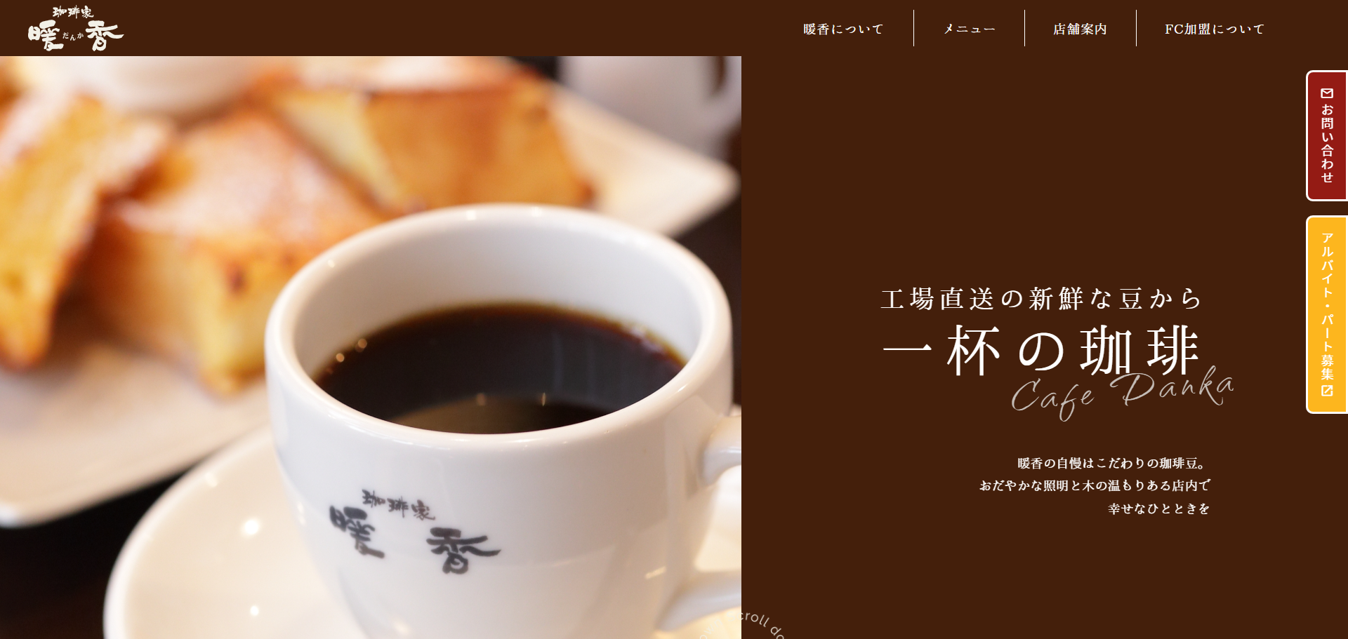 地域密着型のあたたかみのあるカフェを目指している珈琲家暖香では、本部である株式会社デイリーカフェ&フーズが培った外食ビジネスのノウハウをフランチャイズで提供。出店場所を愛知県・岐阜県・三重県の東海3県に限定しており、郊外のロードサイド店を条件に出店を行っています。